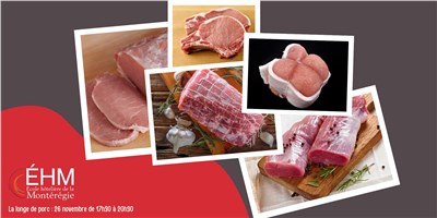 La longe de porc n’est pas le petit morceau qui pèse environ 600 à 700 grammes, long et très tendre.  Ce morceau est le filet de porc. Une longe de porc pèse environ 7 à 8 kilogrammes. C’est le dos du cochon en enlevant l’épaule et la fesse de la bête entière. Côtelettes, rôtis, cubes, côtes levées et viande hachée seront tous les produits qui viendront de la longe de porc.  Le cours consiste à  Enlever le filet de porc et à le parer.  Enlever le rôti du bout de filet pour en faire un rôti ou des cubes à souvlaki.  On le désosse et on l’attache ou on le coupe en cubes.  Désosser le restant de la longe pour faire un autre rôti qui vient du bout de la côte et trancher des côtelettes sans os. Cela fera des côtelettes simples et des côtelettes papillon. Préparer les côtes levées.  Ceux qui ont du temps pourront faire des paupiettes de porc avec de la chair à saucisse. Prenez les côtelettes de porc simples, aplatissez-les avec un marteau à viande pour en faire de grandes escalopes et farcissez-les avec la chair de saucisse. Attachez-les avec de la corde en croisant comme un cadeau. Enfin, on emballe les morceaux de porc, on rassemble tous nos objets personnels et votre viande. Le cours coûte 130$ Horaire : Lundi 26 novembre 2024 de 17h30 à 20h30 Veuillez noter que vous devez avoir des chaussures fermées, avoir un pantalon et ne pas porter de bijoux aux mains. Si vous avez des questions, vous pouvez contacter Julie Deblois : Julie_Deblois@cssmv.gouv.qc.ca